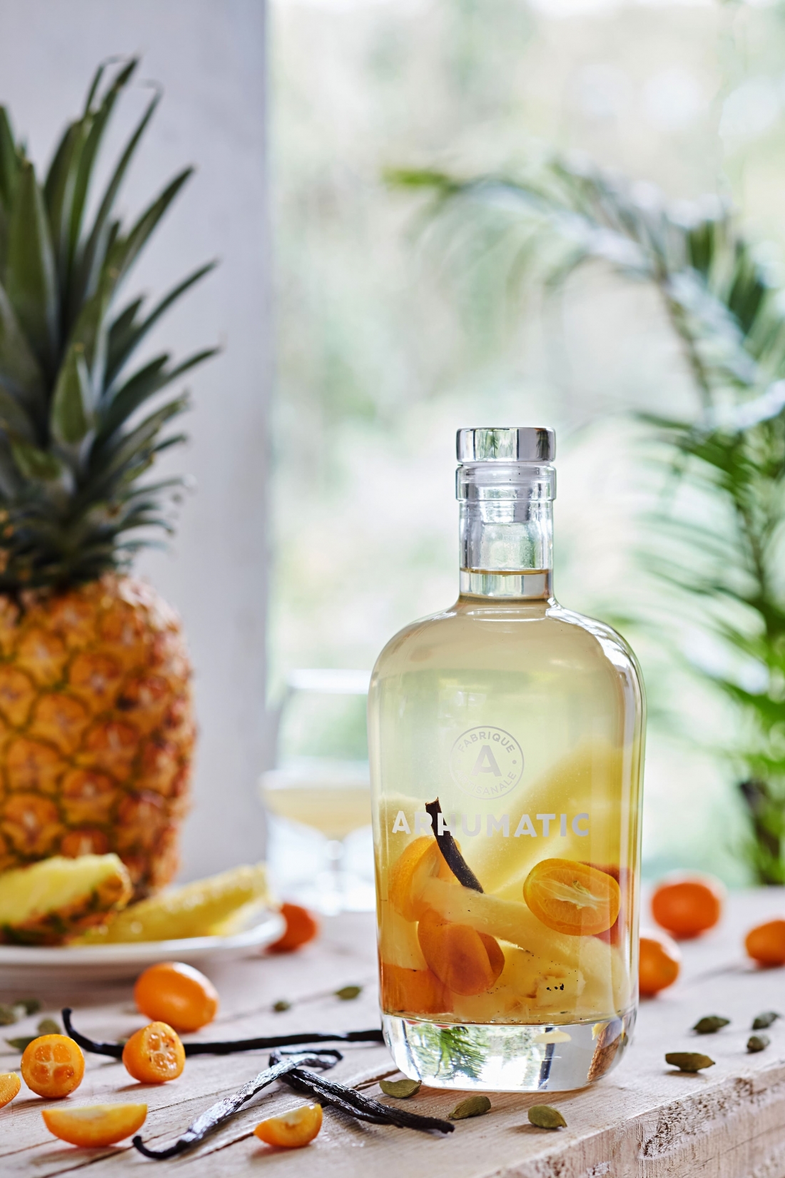 Ingrédients : rhum agricole de Guadeloupe (Damoiseau), ananas, kumquat, sirop de cardamome (pure canne), vanille tahitensis.